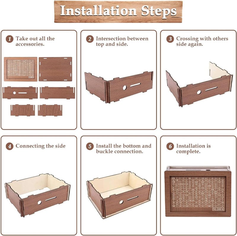 • Package: 1*Wooden money box with engraved figures