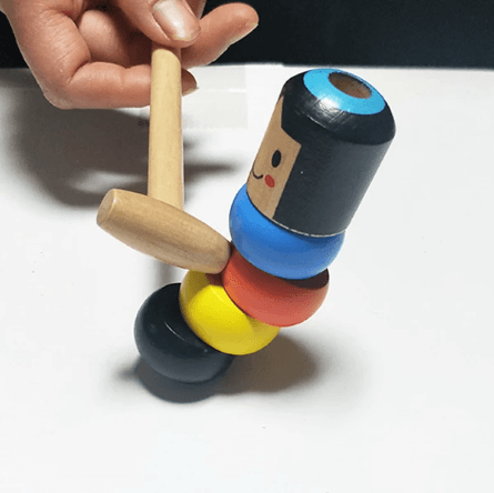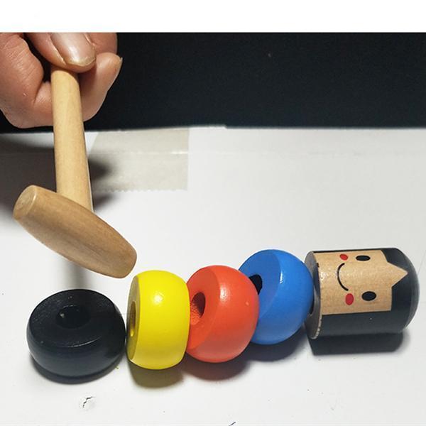 • The magical little wooden man jumped to avoid being hammered
