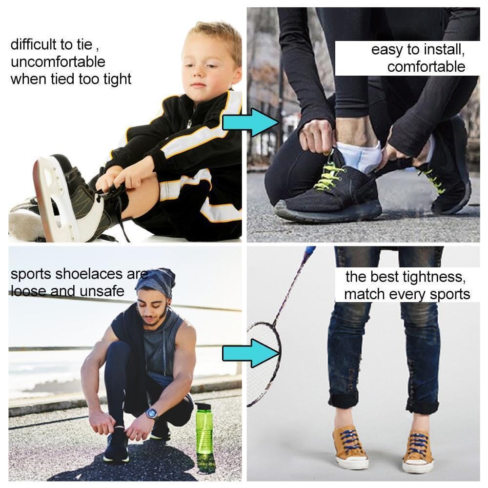 • QUICK EASY TIE SHOELACES FIT ANY SHOE WITH EYELETS- The no tie laces reduce pressure points at the top of your foot and allows your feet to feel more relaxed at the end of the day