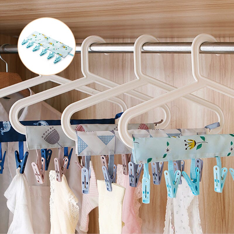 A laundry rack with clips is perfect for hanging dry socks, baby clothes, underwear, bras, scarves, underwear, diapers, towels, gloves, handkerchiefs, or other lightweight items. Suitable for hanging in shower rooms, hangers, balconies, etc.